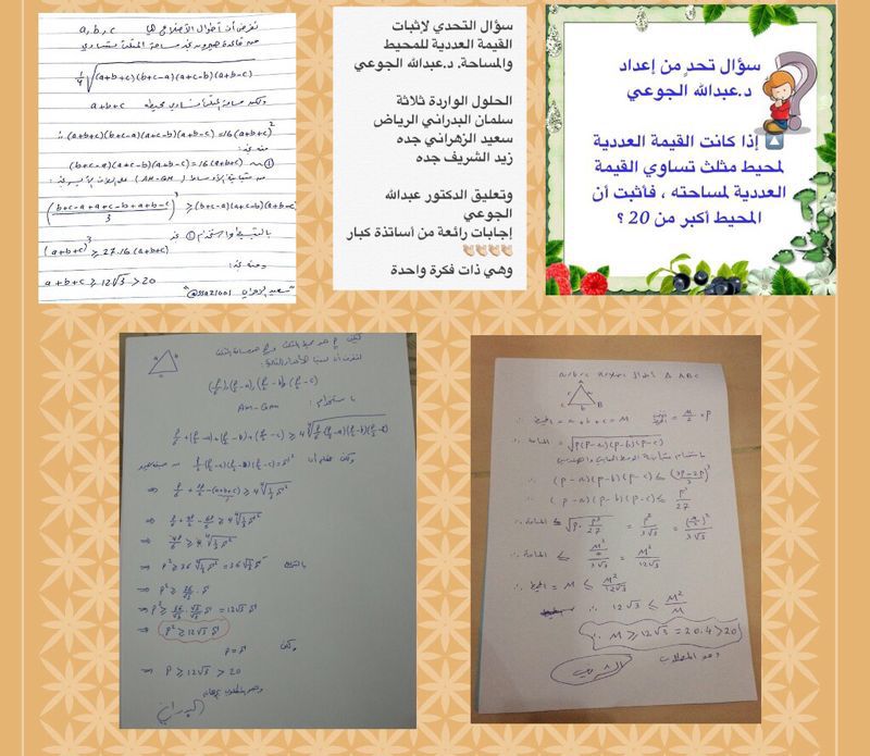 تحميل سؤال التحدي لإثبات القيمة العددية للمحيط والمساحة. د.عبدالله الجوعي