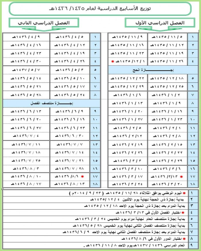 تحميل توزيع التقويم الدراسي 1436 هـ