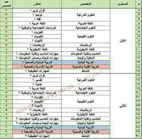 الخطة الدراسية للمسار العلمي في النظام الفصلي 1436 - 1437 / 1437 -1438