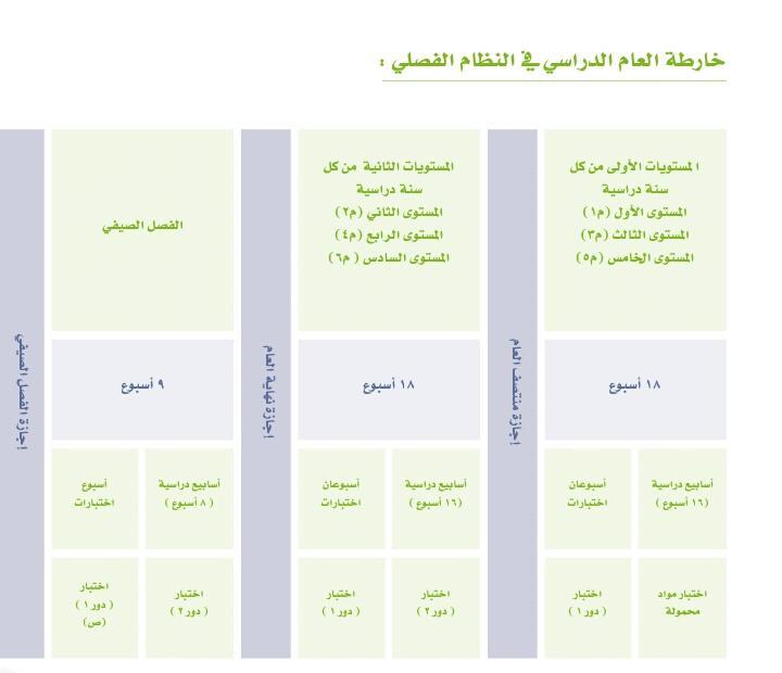 خارطة العام الدراسي في النظام الفصلي الجديد
