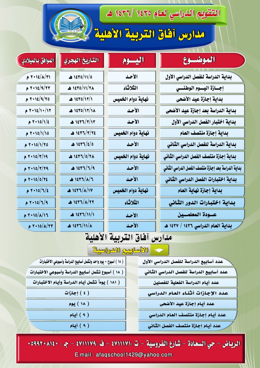 التقويم الدراسي إخراج وتميز في التصميم 1435 -1436 هـ