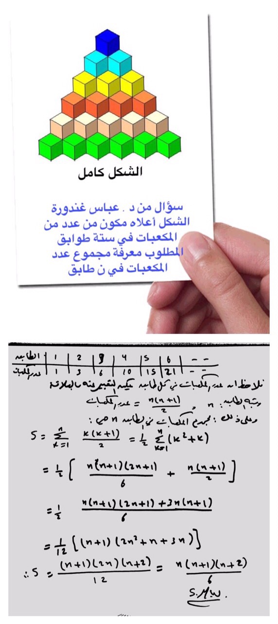 سؤال وجواب من د عباس غندورة حول عدد المكعبات في ن طابق ؟