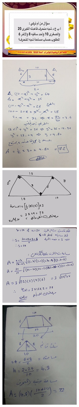 سؤال وجواب . مساحة شبه المنحرف . من أم تركي