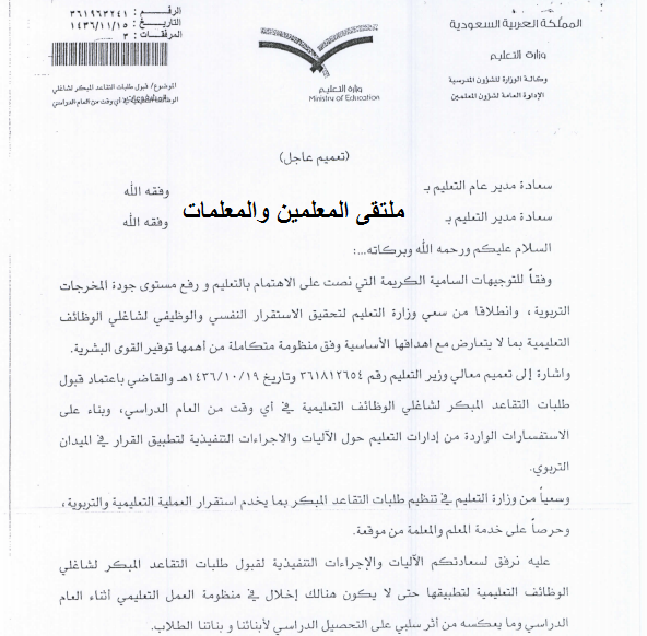 تعميم آلية التقاعد المبكر الجديدة والنماذج اللازمة للتقاعد أو العدول (303.1 كيلوبايت)